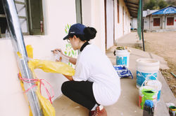 Over a short span of 8 days, we finished painting the 60 metres long front facade of the main building, beautifying it with murals depicting a mini encyclopedia of the wildlife in various parts of the world. We also involved the children in the design of the side wall, where every student imprinted their palm print on the wall, below our Project Namaste logo. In addition, every classroom in the main building was given a fresh coat of paint to liven up the classrooms and new plastic chairs were bought for the staff room.